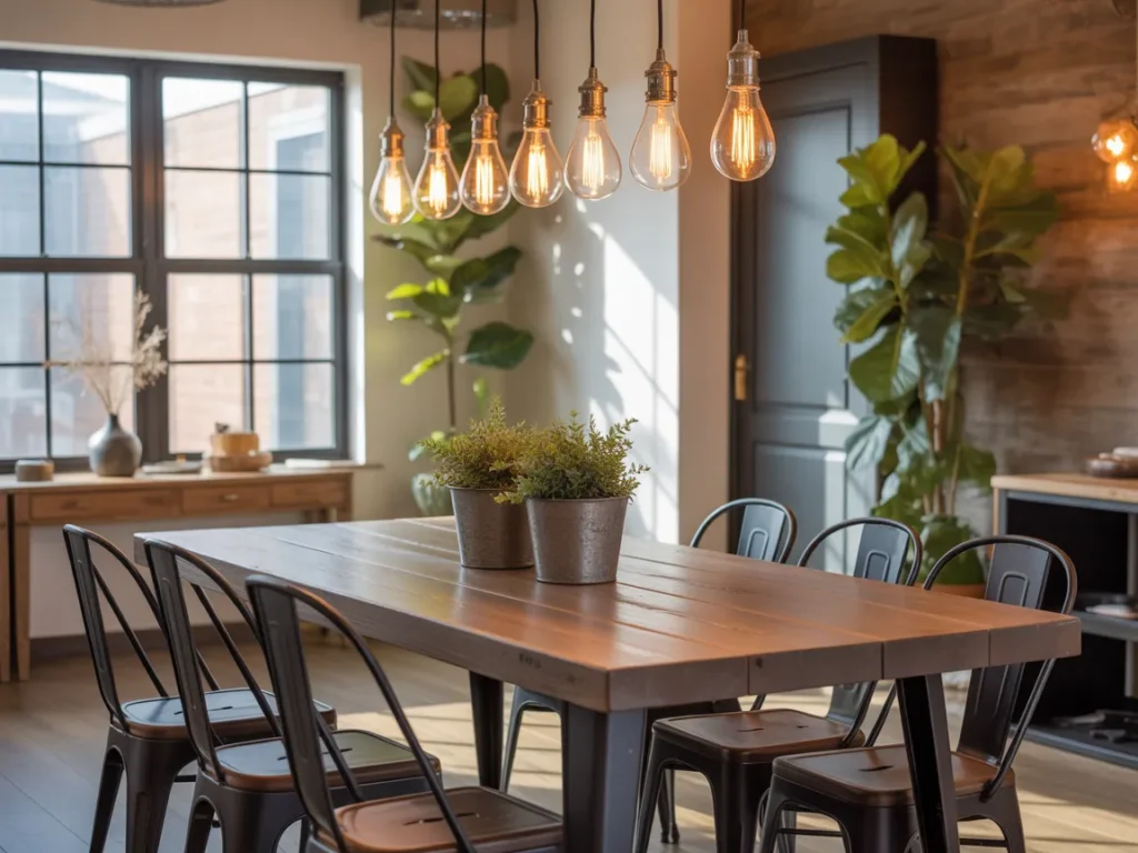 Edison bulbs bring a vintage charm and a soft amber glow. Cluster multiple bulbs at varying heights above the table for a playful yet cozy effect that feels both modern and nostalgic.