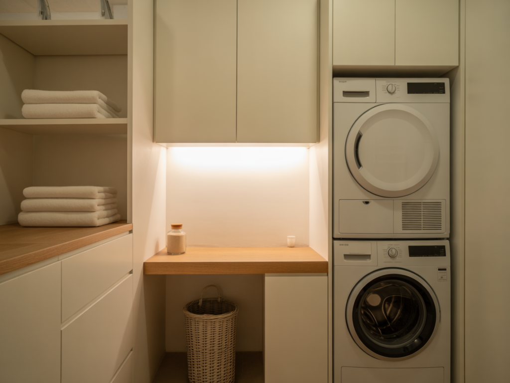 This works especially well in cabinets or custom setups. It helps keep your laundry routine seamless and clutter-free.