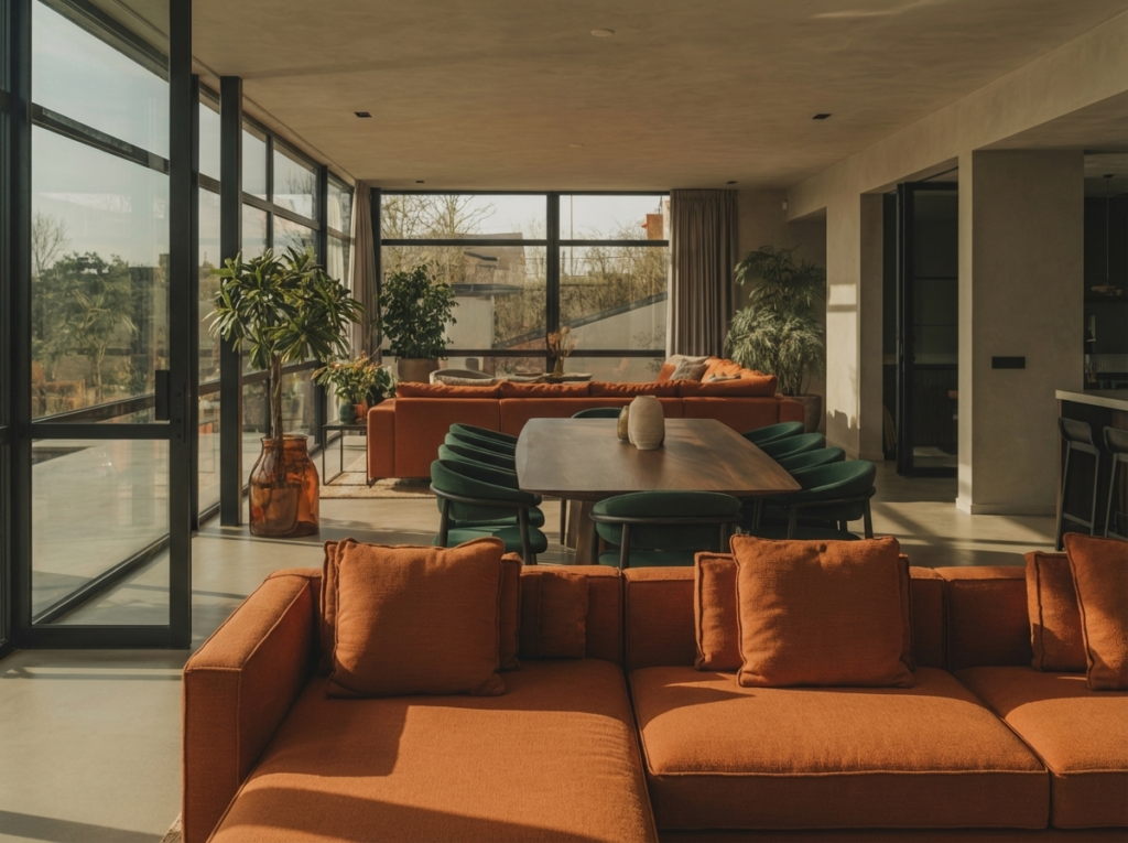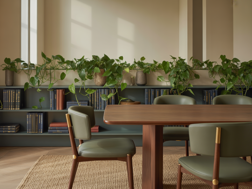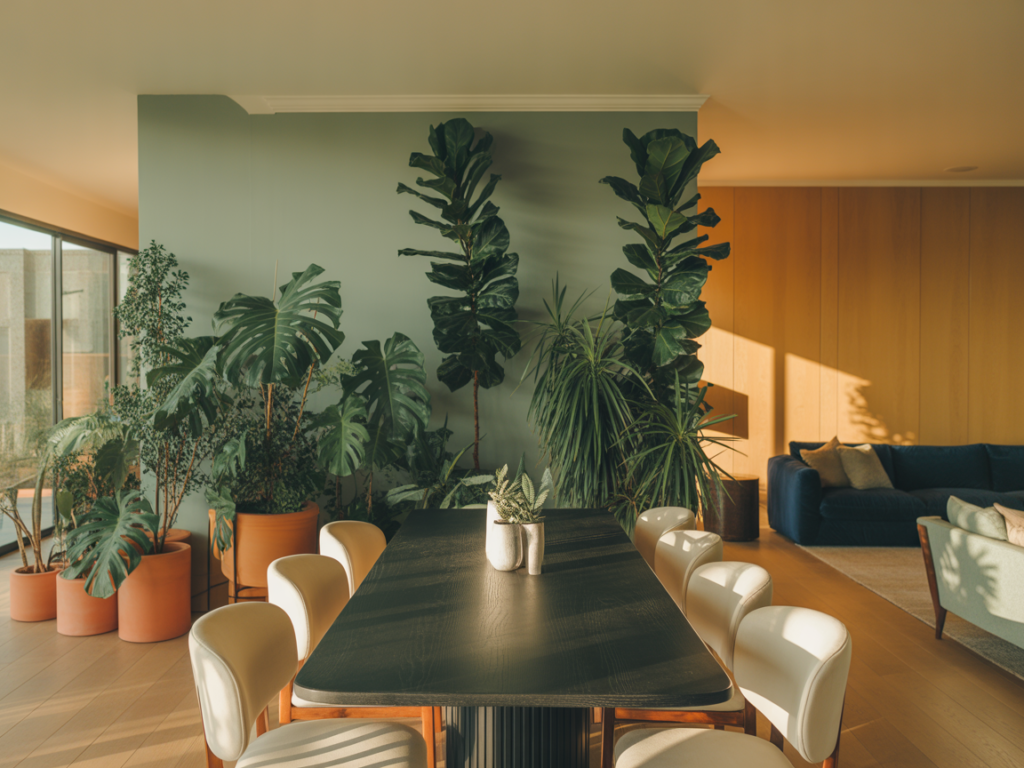 Tall indoor plants or a vertical garden can separate dining and living zones elegantly. Plants act as natural dividers and bring freshness to the space.